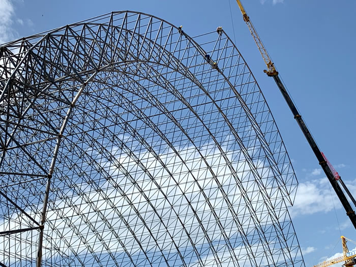 (2)网架加工前应对现场尺寸进行复测,确认无误后方可进行加工、安装;网架制作、运输、安装应遵守《空间网格结构技术规程》JGJ7-2010、《钢网架三门峡螺栓球节点》JG/T 10-2009、《钢网架三门峡螺栓球节点用高强度螺栓》 GB/T 16939-2016、《三门峡钢结构三门峡工程三门峡施工规范》 GB50755-2012、《三门峡钢结构三门峡工程三门峡施工质量验收标准》 GB50205-2020。